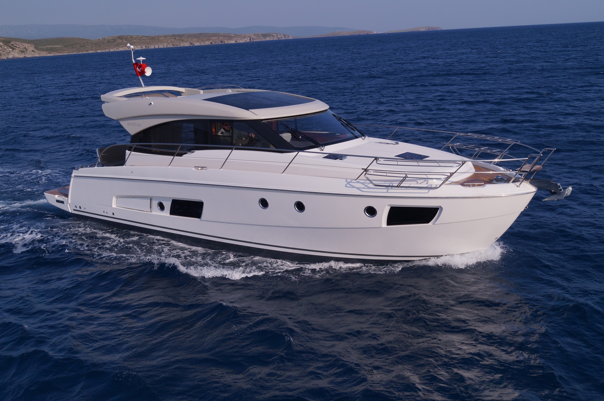 Die VIRTESS 420 COUPÉ besticht durch klare Linien und ein außergewöhnlich modernes Design. In ihr stecken hochwertige Technik und innovative Lösungen. Das große Coupé-Dach lässt sich auf Knopfdruck öffnen und macht die VIRTESS 420 COUPÉ zum echten Cabriolet. Der Steuerstand wurde nach modernsten Anforderungen entwickelt, um dem Bootsführer in jeder Fahrsituation perfekten Überblick über alle Instrumente und Bedienelemente zu gewährleisten. Platz gibt es am Steuerstand für zwei, denn den Luxus und den Komfort einer VIRTESS 420 COUPÉ sollte man ruhig gemeinsam genießen